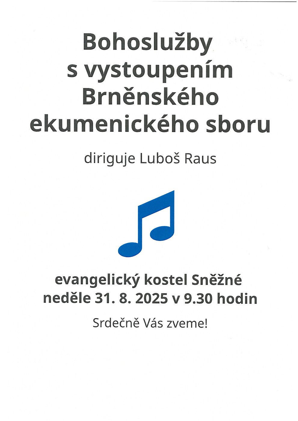 31.8. budou bohoslužby od 9.30 ve Sněžném.