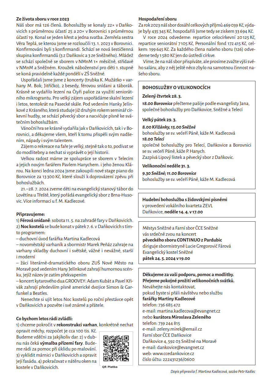 Za Evangelický sbor Daňkovice